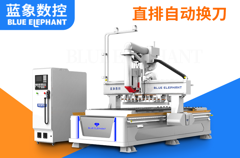 該機器首要用于板式家具、衣柜、櫥柜等板材的下料,可完畢打筆直孔、拉槽、開料。這款設(shè)備機頭部分有兩個6KW風(fēng)冷主軸帶一個9筆直排鉆包。兩個主軸可裝夾不同直徑的銑刀,分別用于拉槽、開料,氣動切換,換刀功率更高;排鉆包可裝夾9個不同直徑的鉆頭,氣動切換,切換速度快,并且相鄰的孔只需方位合適,可多鉆頭齊下。