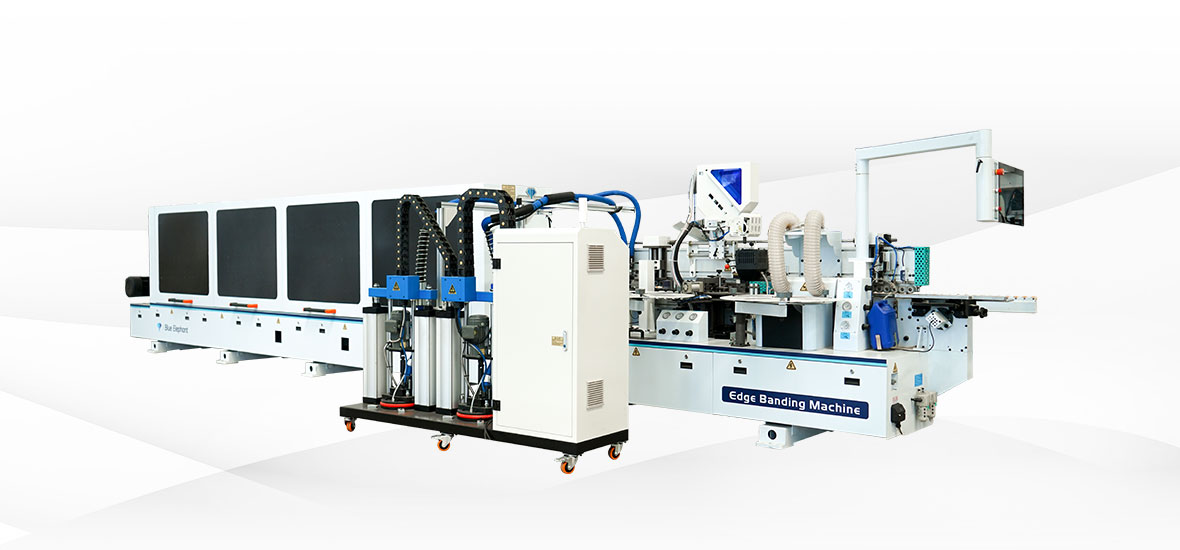 功能:前分離-預(yù)銑-上膠鍋+快速溶膠六輪壓貼1-下膠鍋+六輪壓貼2-快速齊頭-氣動精修1-氣動精修2-四頭跟蹤倒角-氣動刮邊1-氣動刮邊2-斷絲+平刮-后清洗-拋光1-拋光2
