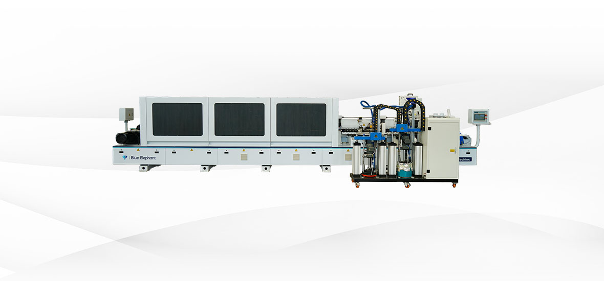E-70JDSR全自動封邊機功能:前分離-預銑-涂膠貼邊1-涂膠貼邊2-齊頭-手動粗修-手動精修-跟蹤倒角-刮邊-平刮-后清洗-拋光1-拋光2