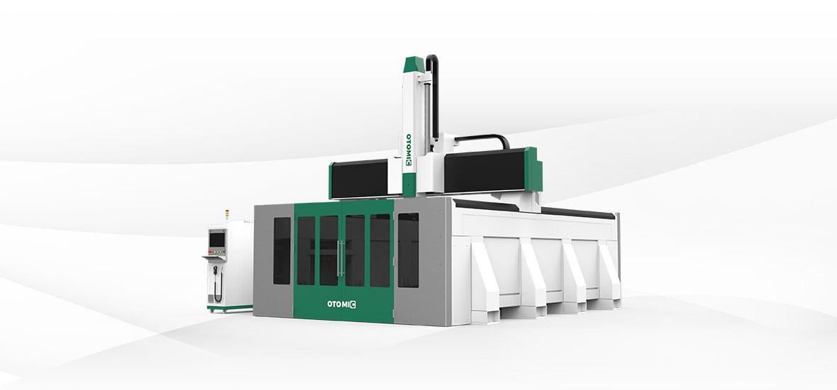 大型橋式結構,活動橫梁,雙龍門驅動,固定工作臺設計。